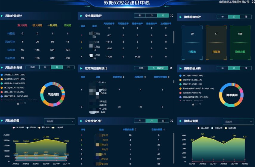 新中大结合山西省的相关标准及山西建工集团的管理经验,协助其构建风险库及隐患库,项目部根据自身管理标准适配集团风险库,开展风险辨识及评估工作,实现对风险的分级管控并自动建立巡检任务推送相关责任人,追踪整改状况生成巡检人台账,降低现场安全风险,达到项目及企业双防双控的管理目的。