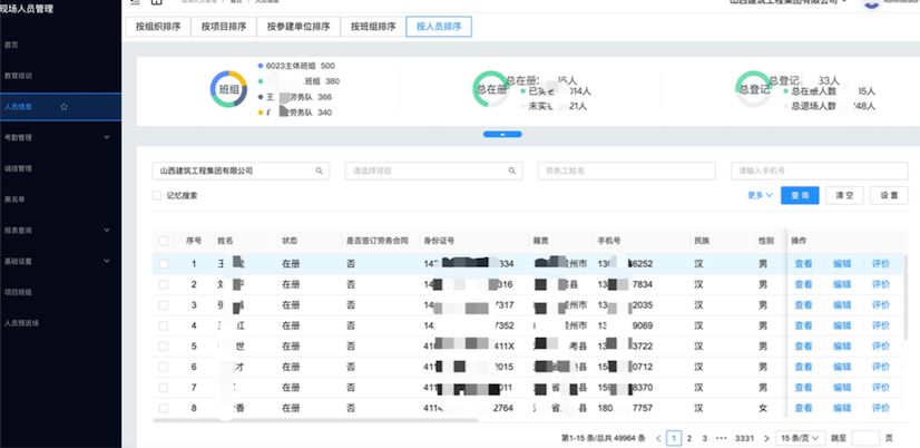 通过对项目劳务人员信息录入的方式做标准规范、新中大协助山西建工集团逐步形成其庞大且详尽的劳务工库,根据劳务工行为累计评价积分、更新人员档案信息,从而实现对劳动力资源的科学调配。