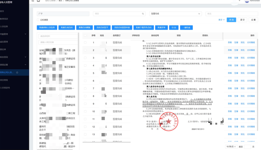 D6C联合契约锁实现山西建工集团劳务人员合同的在线签订,且劳务合同的模板可融合劳务工档案中的项目、班组、工种等相关信息,便捷化完成劳务工合同的在线签订及淹源数据的建立。