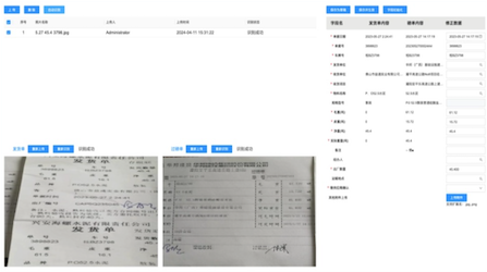 • 智能识别:通过OCR技术上传“磅单+运单”上传提取自动切图照片中的文本数据,并进行人工修正保障数据准确。
