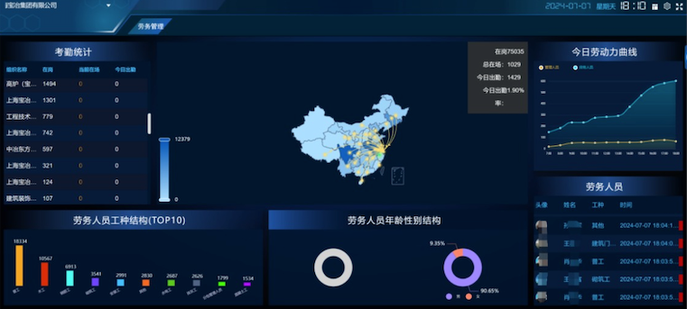 宝冶集团在2023年初步将十大建设项中的劳务员工管理约合作,通过DGC系统对人员数量进行管理,至今已投入315个项目,占总在建筑面积65%,总在劳动力工资6840人,是企业经营能力工程建设的典型客户。