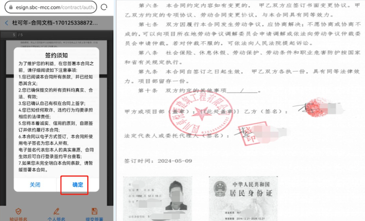 宝冶集团使用DGC平台联合签署对劳务工单线上合同签订管理,通过DGC平台统一合同流程,并在总包方的监管下,让分包与劳务人员通过手机端或登录等客户端直接进行电子版合同,最大程度提高合同签订的有效性与规范性。