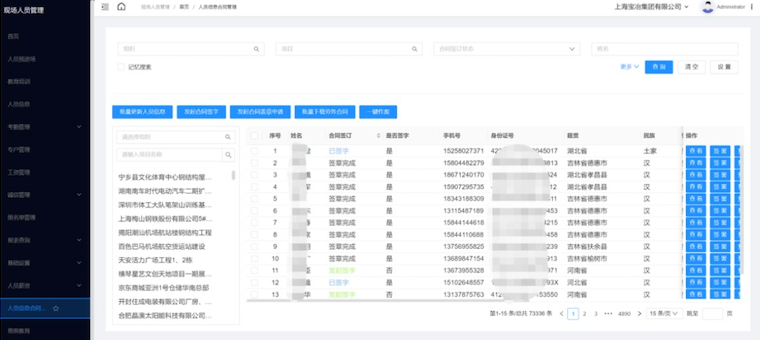 为保障宝冶集团员工的安全可控及成本可控,新中大联合宝冶集团规划并实施了劳务合同的人员数工程进度监测及预警,通过工程发放平台调用DGC接口,自动化对接完成工程进度人员的合同签订情况,并根据实际需求对劳务合同人员数据进行跟踪,确保用户的安全及成本可控。