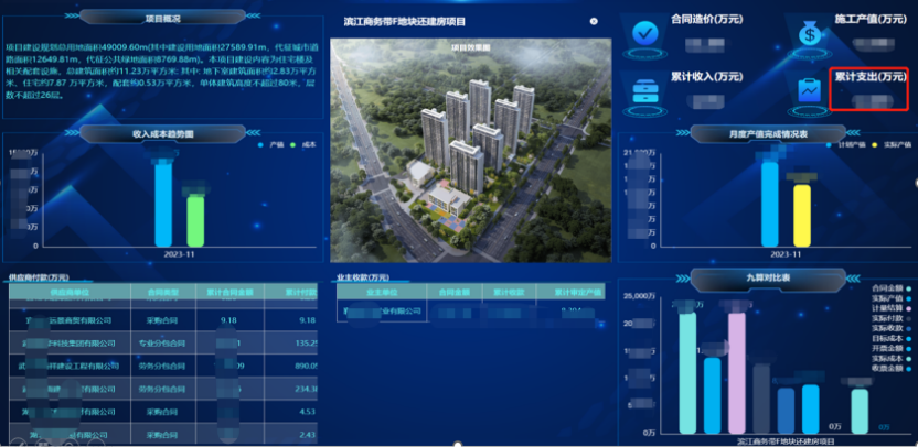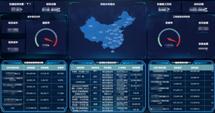 对成本管理相关数据的发生、变更,实时以专业报表形式展现,对关键数据、关键节点实现风险预警及管控,减少人工整理的数据出错及报表延后问题,为集团的目标成本实现及过程管控提供支持。