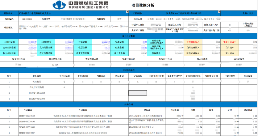 西安研究院主要业务类型包括了科学研究、四技服务、装备制造与销售、工程承包四个方面。项目围绕煤矿安全开采,以地质为基础,具有极强的不确定性和特殊性、类型丰富、区域范围广、技术难度大、数量多、金额差异大、周期短等特点,管理难度大。