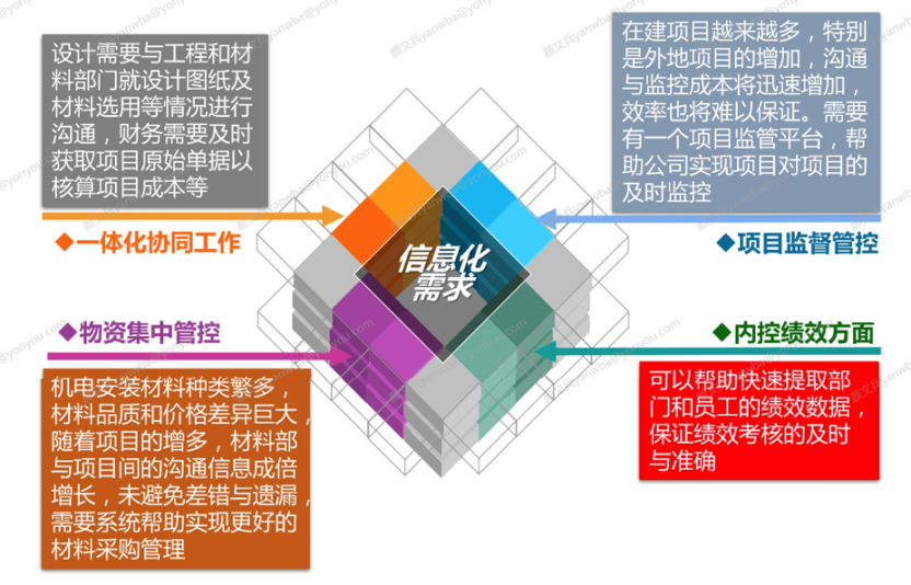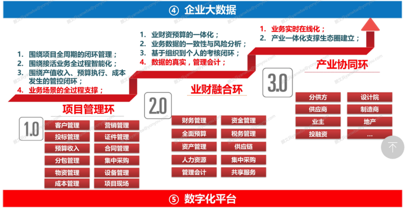 根据总体规划、分步实施、需求牵引、效益驱动、重点突破的原则,对企业核心业务流程进行梳理,在集团全局范围内建立涵盖综合项目管理、财务管理、资金管理等于一体的集团管控数智化平台,实现集团全组织范围内的业务联动、流程管理、风险预警和知识管理,从技术手段上保证集团实现精细化、精益化管理,全面提升企业的竞争优势。