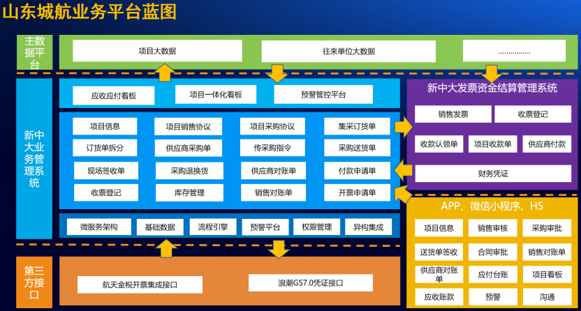 2.实现信息化平台的全覆盖:通过本次业务管理平台建设将山东城航供应链集团各级单位的业务管理业务全部整合到一起,最终达到“横向到边,纵向到底”的业务管理业务覆盖面,满足各级单位对业务管理全过程的跟踪监控、数据上报、决策分析的管理要求,打通纵向管理层级,为山东城航供应链发展提供准确、全面的大数据支撑。