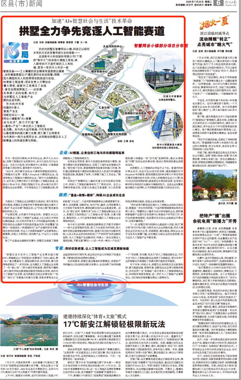 作为杭州市首批创建的6家人工智能产业生态创新空间,区智慧网谷小镇聚焦"AI+智慧社会与生活",着力打造"基金+基地+产业"一体化的人工智能社会生活圈。依托杭钢半山基地强大算力支撑聚力打造"中国算谷",在以深度求索等为代表的重点企业引领下,拱墅区正在人工智能赛道上快速发展、不断突破。