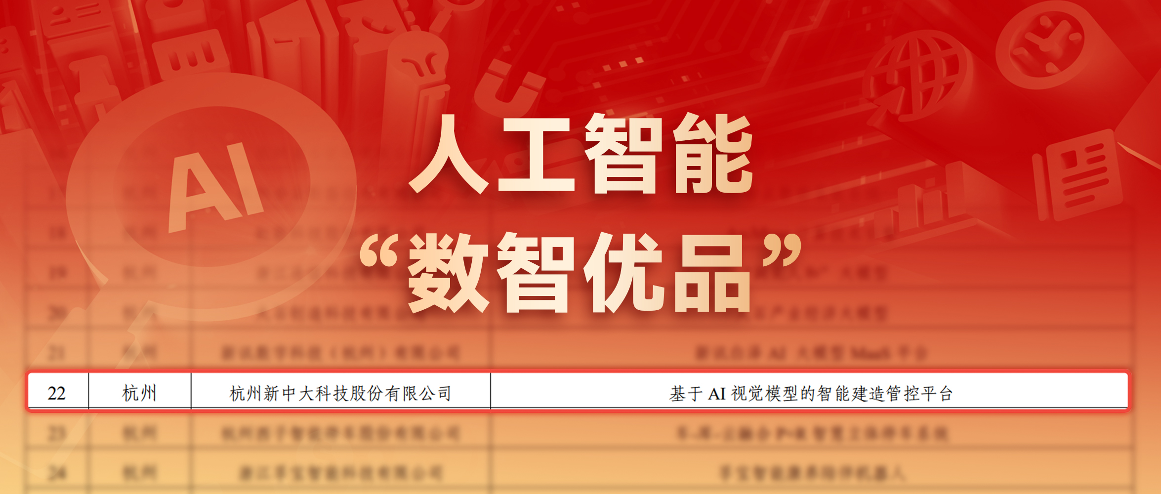 近日,浙江省经信厅公布了2024年浙江省人工智能应用场景、应用标杆企业、人工智能服务商及“数智优品”名单。新中大科技凭借在技术积累、行业实践和产品创新等方面的卓越表现,“基于AI视觉模型的智能建造管控平台”成功入选2024年浙江省人工智能“数智优品”。