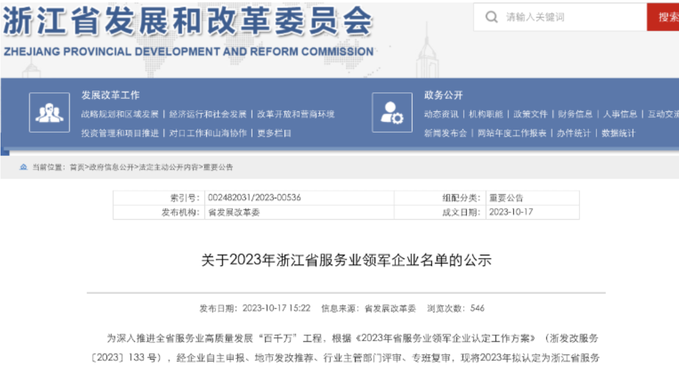 近日,浙江省发改委公示了“2023年浙江省服务业领军企业“名单,根据浙江省软件和信息技术服务企业在业务规模、核心技术、商业模式、创新产品和服务方式在国内同行业中处于领先水平的评审要求,新中大成功入选由浙江省经信厅组织的软件和信息技术服务行业领跑企业名单。