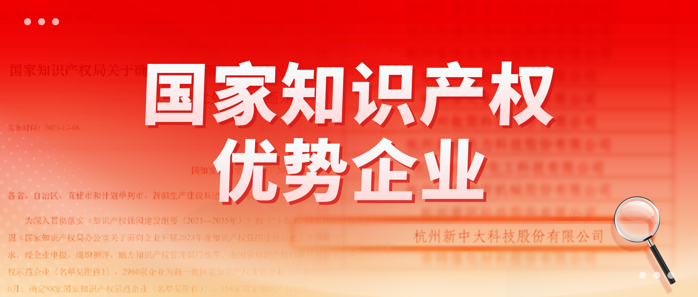 12月6日,国家知识产权局公布了2023年度国家知识产权优势企业的评定结果。新中大科技凭借行业内领先的研发创新实力、完备的知识产权管理体系以及突出的知识产权管理水平,成功入选“2023年国家知识产权优势企业”。