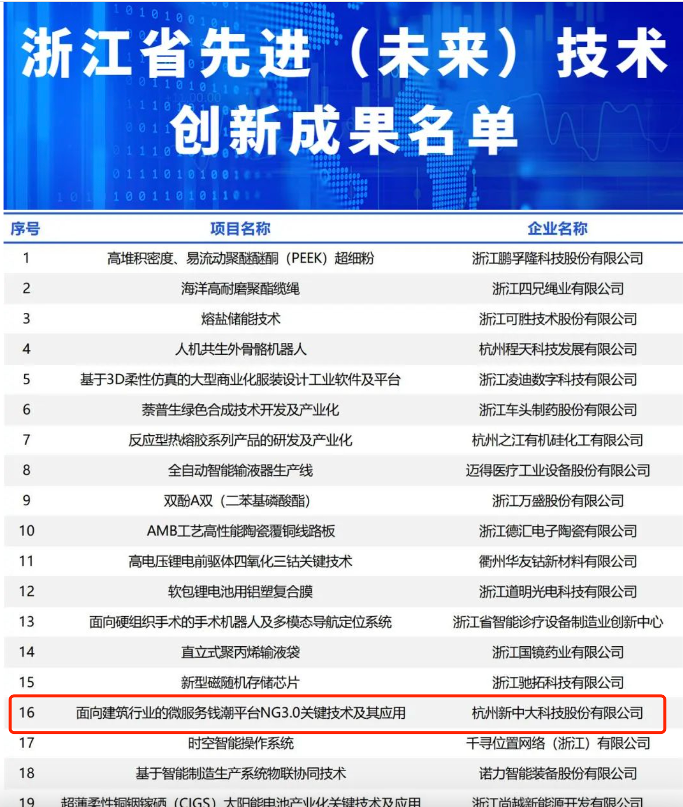 新中大钱潮平台入选浙江省先进(未来)技术创新成果名单