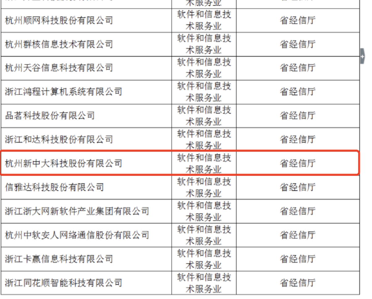 近日,浙江省发改委公示了“2023年浙江省服务业领军企业“名单,根据浙江省软件和信息技术服务企业在业务规模、核心技术、商业模式、创新产品和服务方式在国内同行业中处于领先水平的评审要求,新中大成功入选由浙江省经信厅组织的软件和信息技术服务行业领跑企业名单。