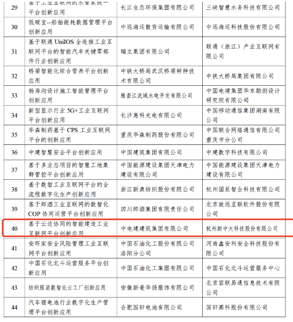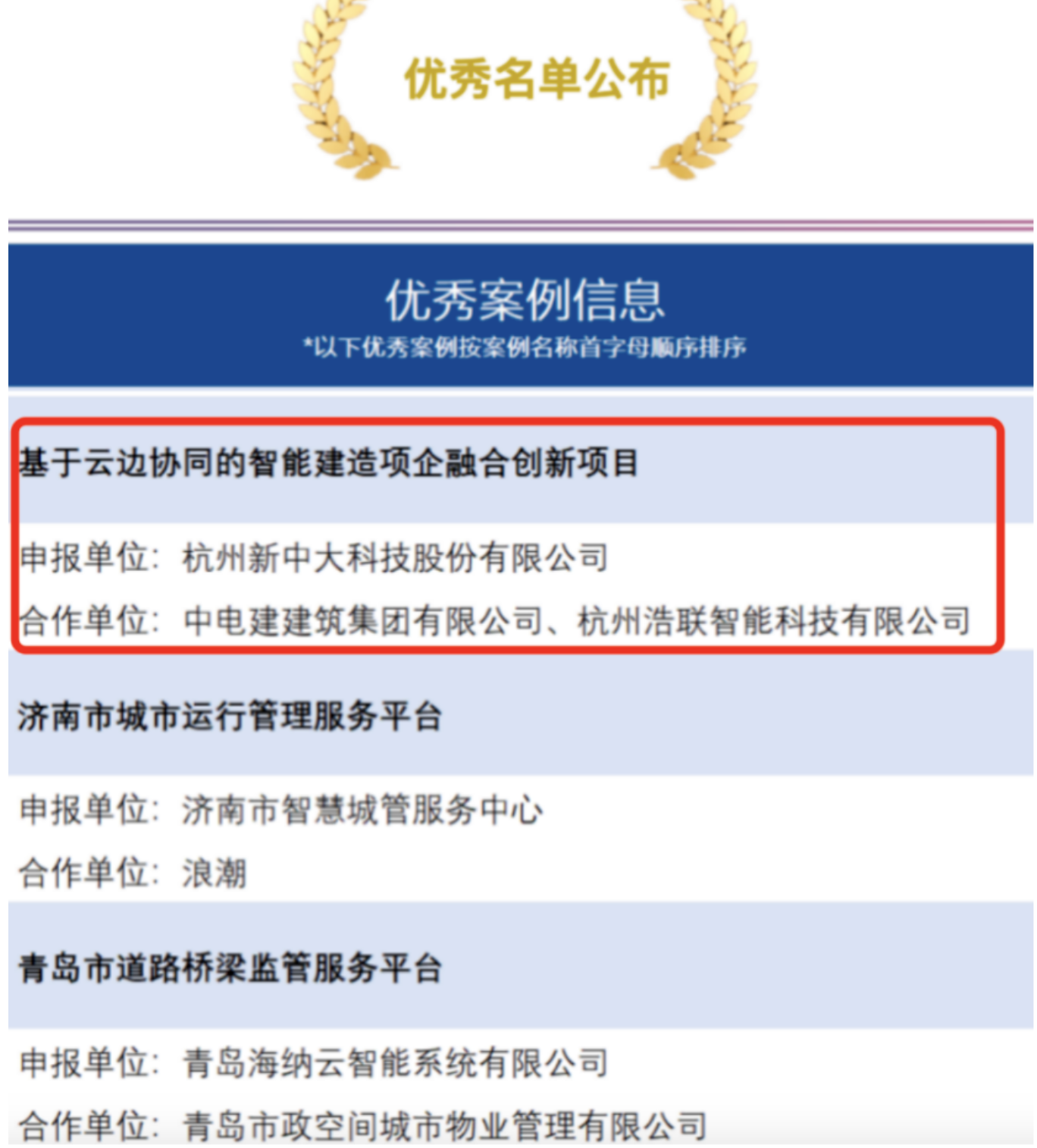 经过多轮专家评选,由新中大科技、中电建建筑集团有限公司联合申报的“基于云边协同的智能建造工业互联网平台创新应用”作为“数字化管理”版块的优秀案例,成功入选“工业互联网平台创新领航应用案例”。