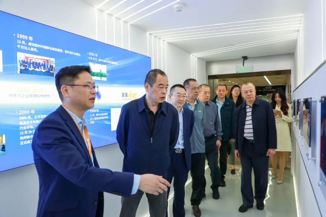 张毅会长一行首先参观了新中大科技展厅,系统性地了解了新中大科技在推动工程建设行业数字化、智能化转型方面所进行的长期探索与取得的丰硕实践成果。重点关注了新中大科技在人工智能大模型这一前沿方向的战略投入与落地场景,以及其如何赋能智能建造,推动传统建造方式的革新成果。