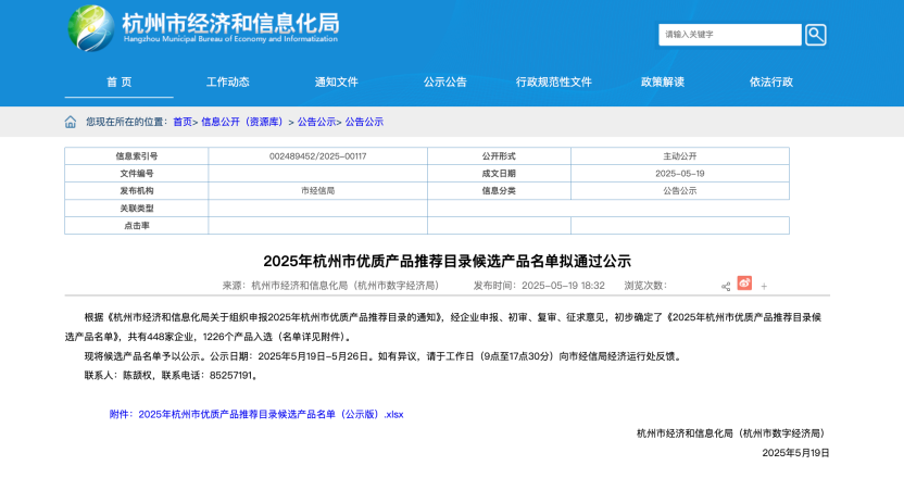 新中大科技四项产品入选《2025年杭州市优质产品推荐目录候选产品名单》