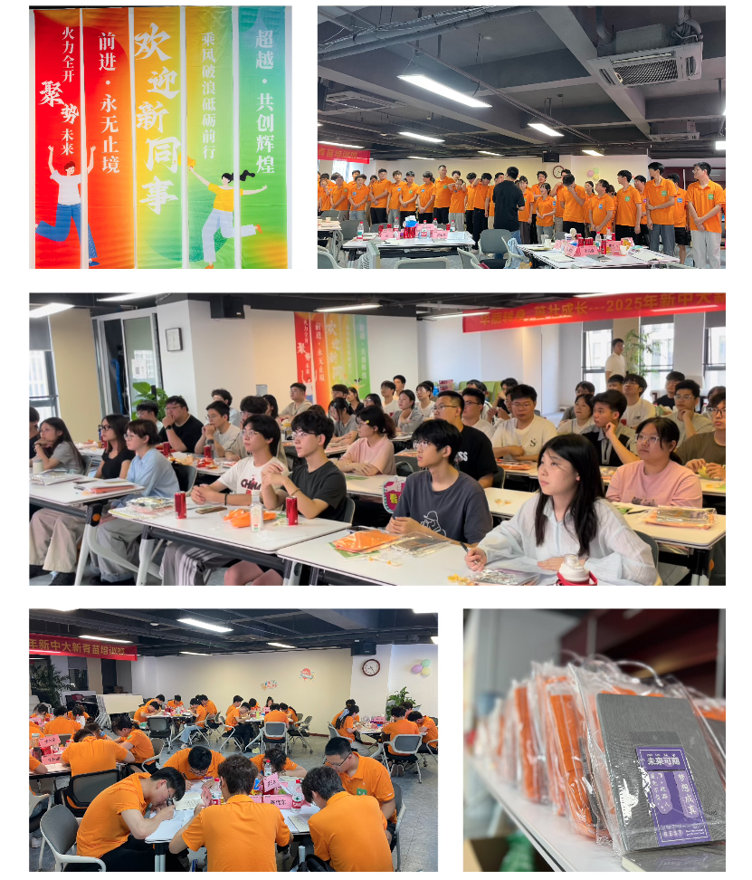 入职第一天,新青苗们就感受到了满满的仪式感!从领取包含文化衫、定制笔记本的“青苗大礼包”,到在背景板前留下青春洋溢的入职合照,每一个环节都精心设计。破冰活动中,HR团队化身“社交魔法师”,通过“热场贴标签”“兴趣分组”等游戏,迅速打破陌生感,让新青苗们快速找到志同道合的“上班搭子”。开营仪式上,公司高管团队亲临现场,副总裁、首席技术官蔺相如和副总裁、研究院副院长象山翁分别以“三个期望”和“19年逆袭之路”的分享,点燃了新青苗们的职场热情。
