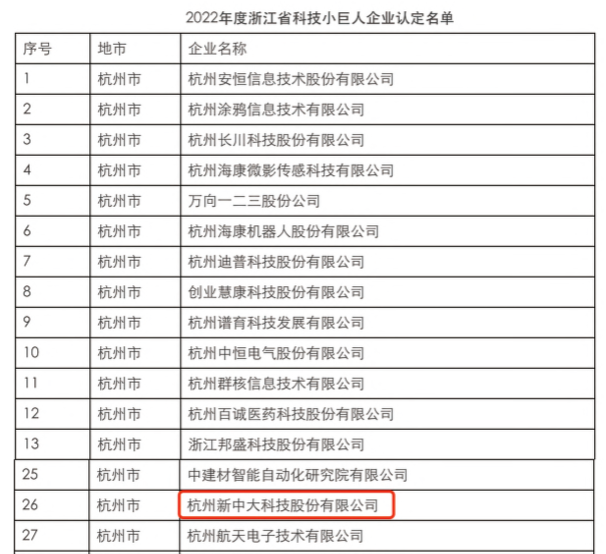 新中大科技获评“浙江省科技小巨人企业”称号